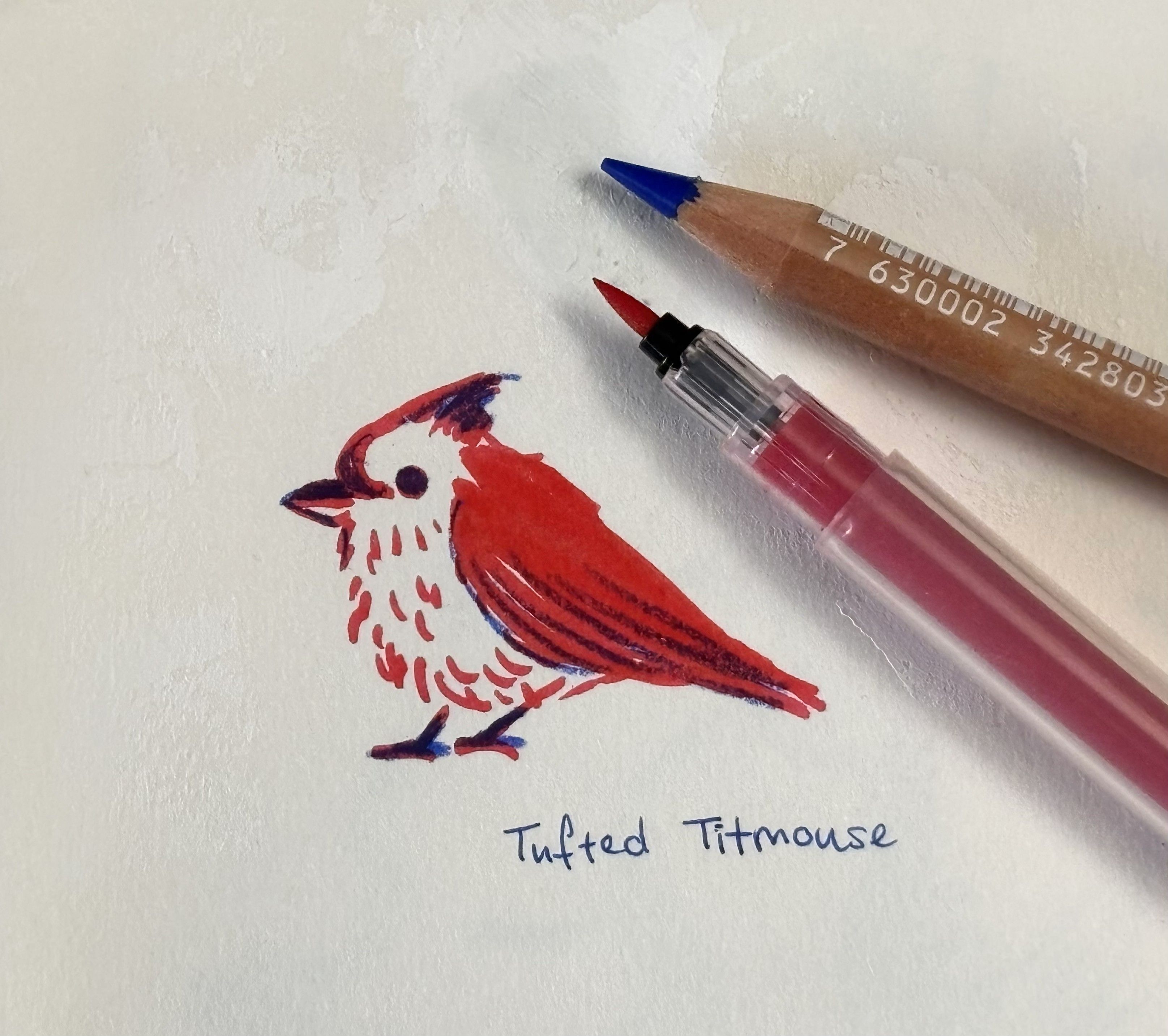 A little sketch I did with the Kakimori Colour Liner Kit (filled with Sailor Fountain Pen Shikiori Irori Ink) and a Caran D’Ache Luminance Ultramarine colored pencil.