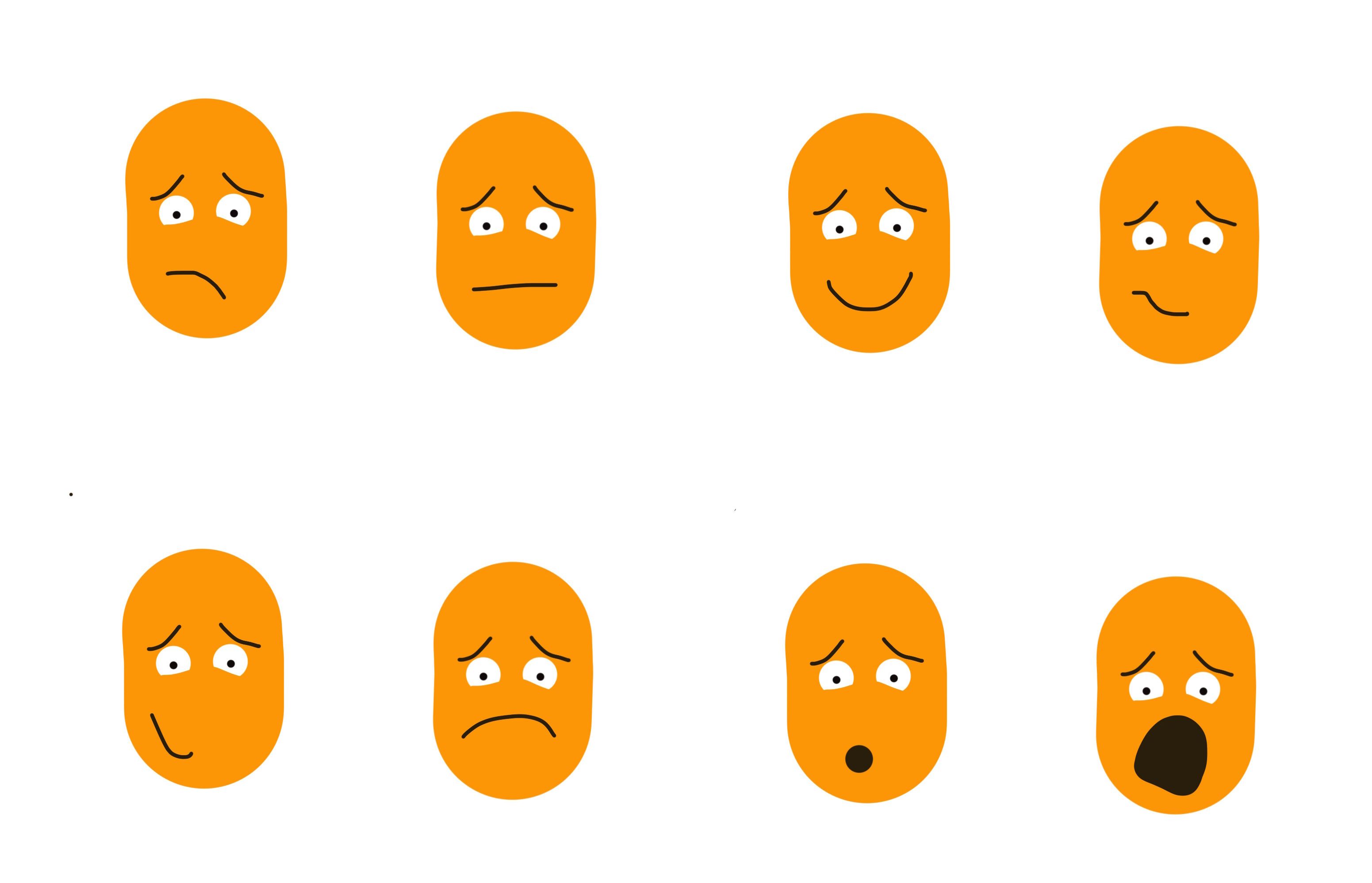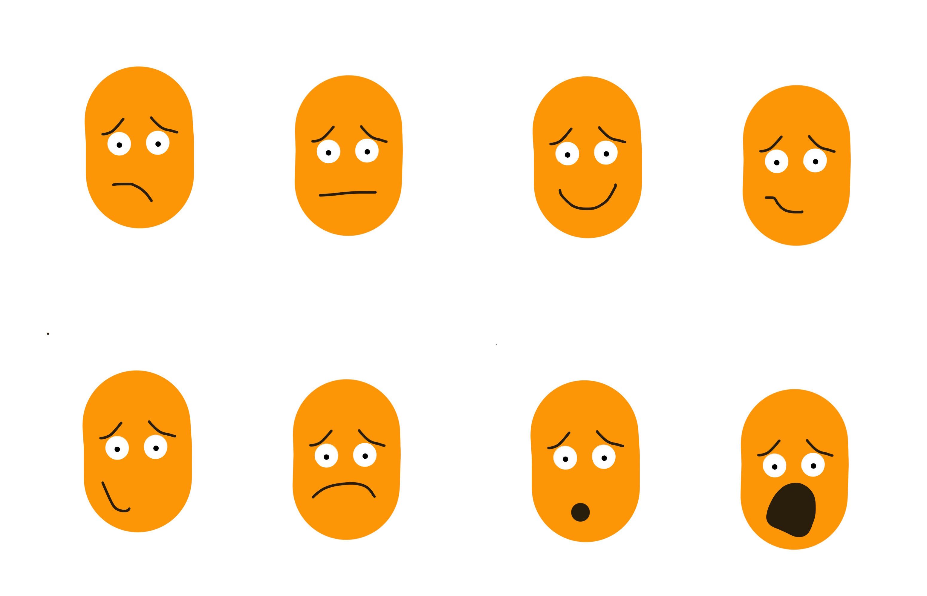 Take the below faces as an example. In each of the eight faces the shape of the face, eyebrows and eyes are all the same. I literally just copied and pasted then. The ONLY thing that is changing from face to face is the mouth.
